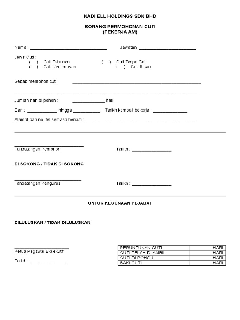 Contoh Borang Permohonan Cuti Pekerja Swasta Ousbally