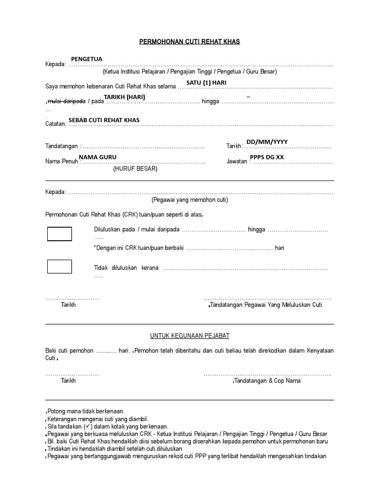 Contoh Borang Permohonan Cuti Rehat Khas Pdf